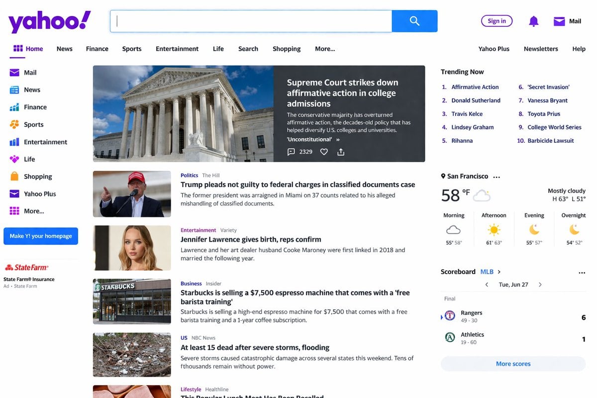 Screenshot of the {argument name="website" default="Yahoo"} homepage.